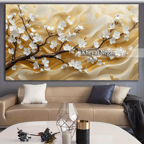 این اثر هنری زیبا، طراحی درختی با شکوفههای مگنولیا را به نمایش میگذارد که بر روی زمینهای نرم و ملایم قرار گرفته است. رنگهای شاداب و جزئیات دقیق این تابلو به فضا حس آرامش و زیبایی میبخشند. 🌼✨