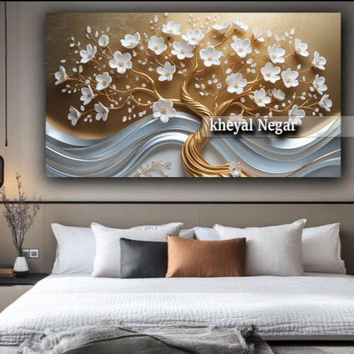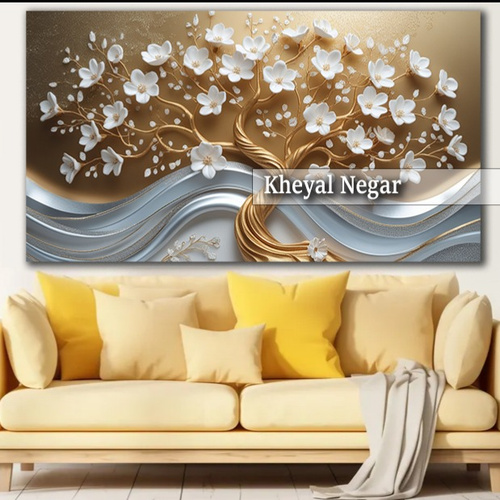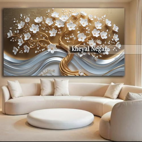 این اثر هنری شگفتانگیز، نمایانگر درختی زیبا با گلهای سفید و جزئیات طلایی است که در کنار موجهای نرم طراحی شده است. حس آرامش و زیبایی این تابلو، فضایی دلنشین و مدرن را به اتاق شما میآورد. 🌳✨
